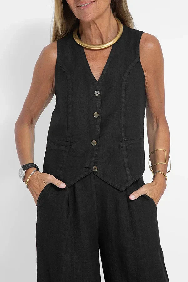 Il Completo Yara coniuga perfettamente stile e comfort . Dal design personale , regala un look sofisticato senza sforzo . La sua versatilità lo rende un capo ideale per eventi formali o per un abbigliamento casual . Perfetto per dare un tocco elegante e pratico alla vita di tutti i giorni.